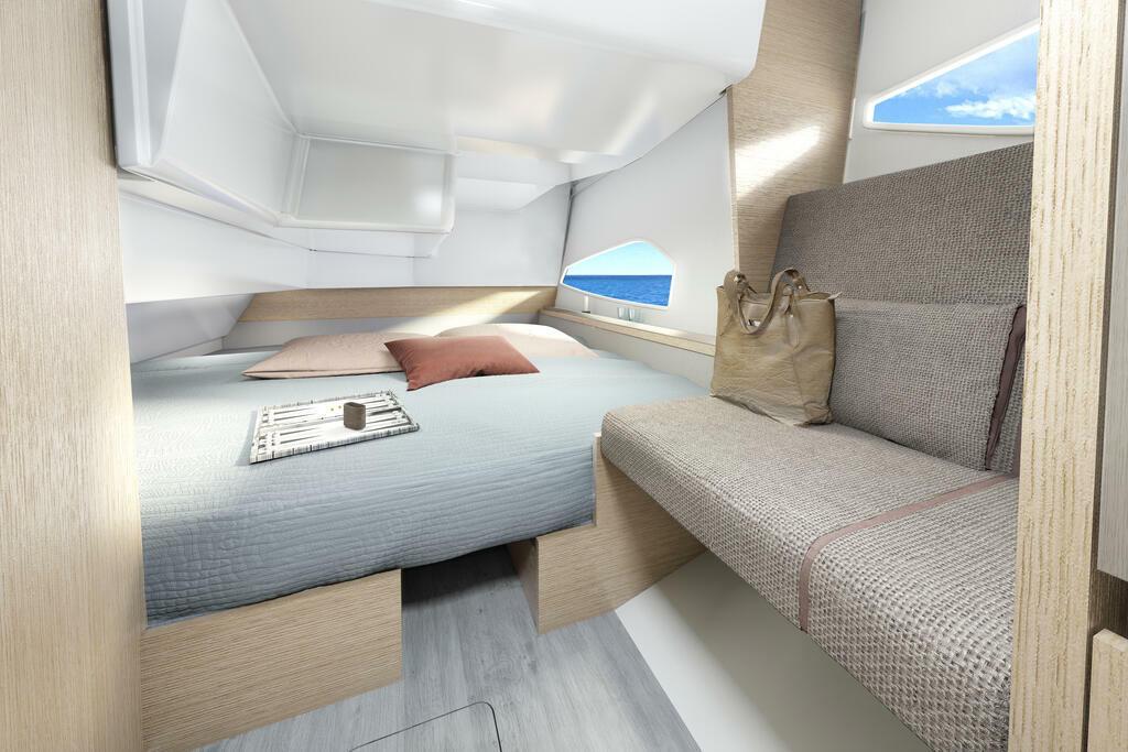 Luxus für die ganze Crew - Auch die VIP-Kabine macht ihrem Namen alle Ehre: Mit einer Kingsize Doppelkoje, Sonnenlicht aus zwei Rumpffenstern und dem neuen Oberflächendesign von Sealine bietet sie alles, um sich wohlzufühlen.