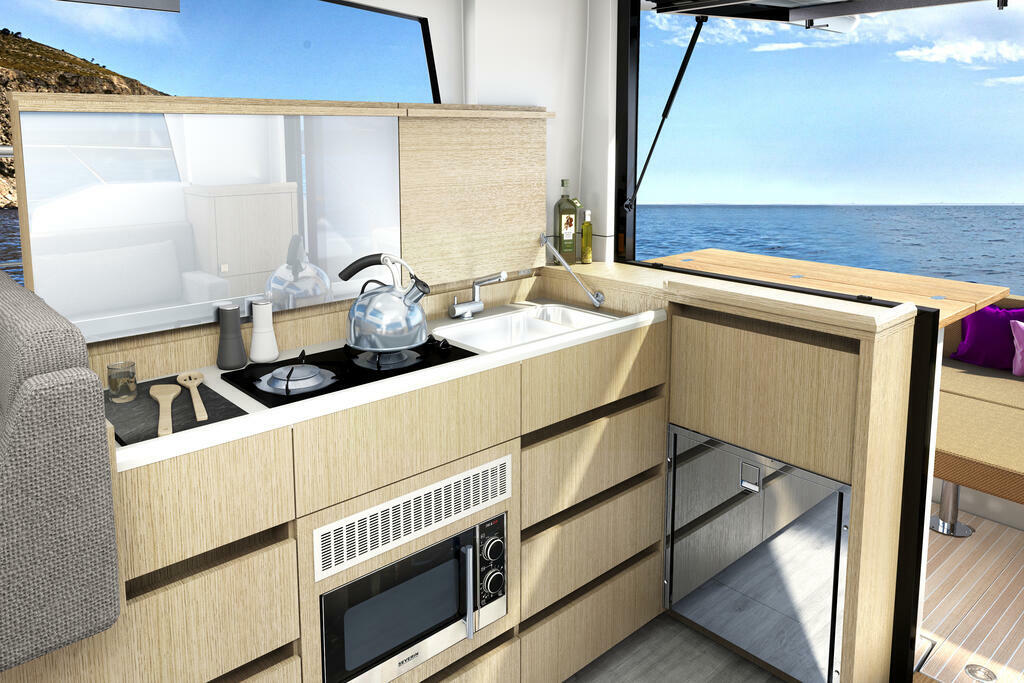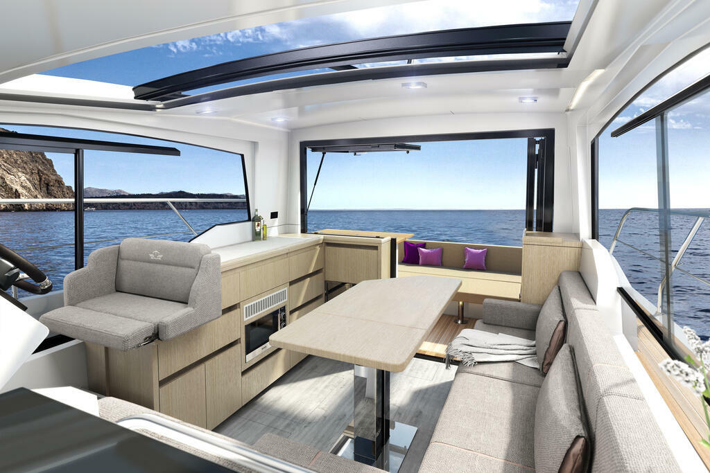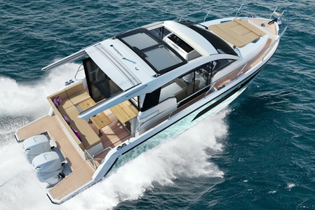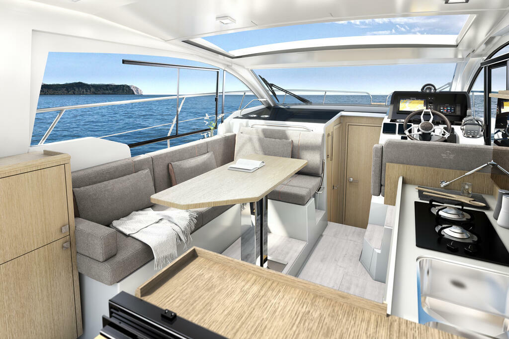 Die Sealine C335v kombiniert das Temperament des Außenbordmotors mit elegant designtem Lifestyle. Zwei 300PS starke Kraftpakete versprechen furioses Fahrvergnügen, welches von dem neuen progressiven Charakter des Steuerstandes noch gesteigert wird. Das Interieur beweist vom Salon bis zur Eignerkabine absoluten Stil, vereint subtile Farben und Highend-Materialien zu einem magischen Ganzen. So exklusiv wie an Bord verbringen Sie auch die Momente im Meer, denn im Stauraum unter dem Cockpit findet Wassersportausrüstung jeder Größe Platz. Erleben Sie jetzt mit der Sealine C335v moderne Ästhetik und luxuriöse Großzügigkeit.